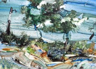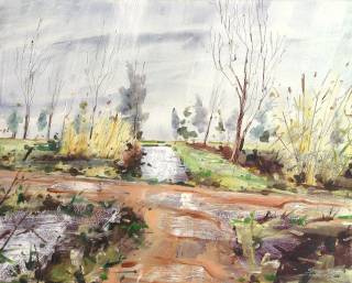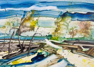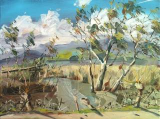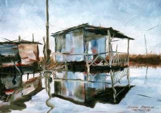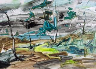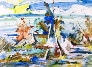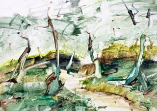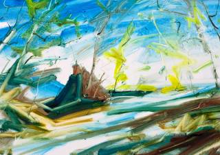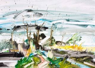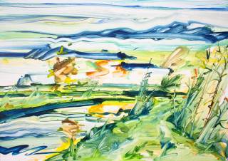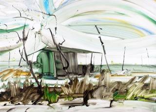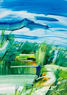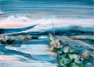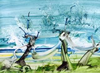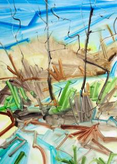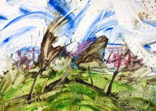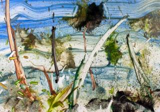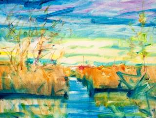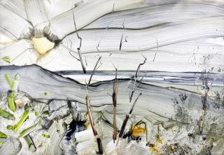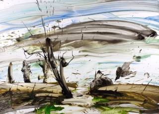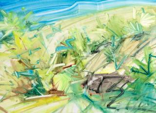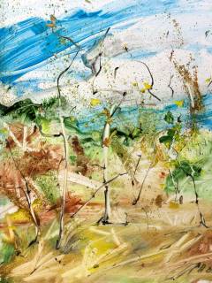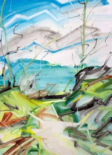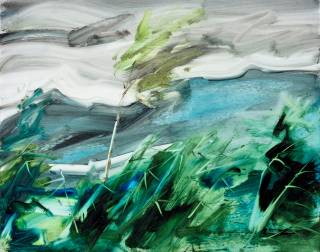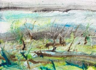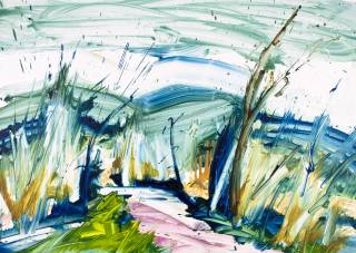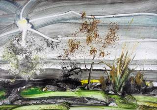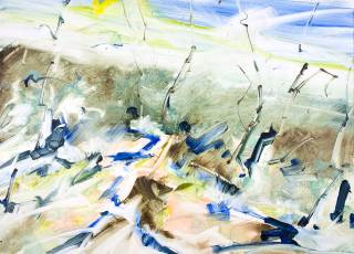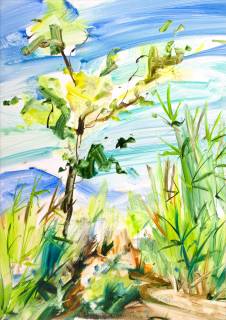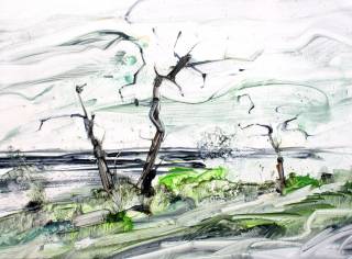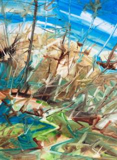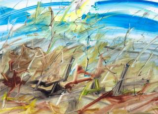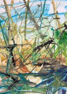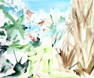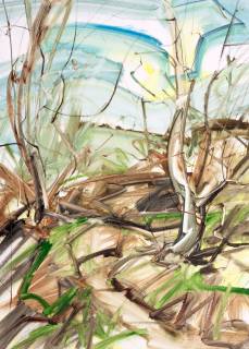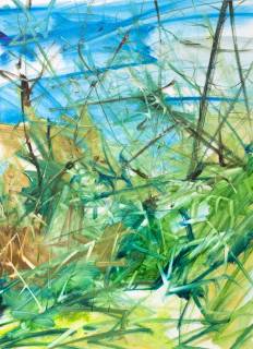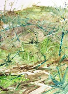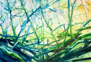 Umarmung von Schilf, Zweigen, Gras und Wind