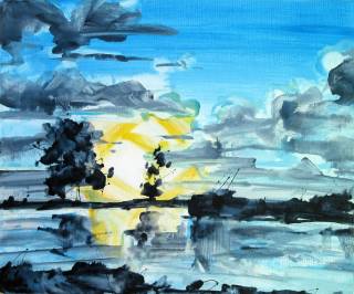 Das Licht küsst den Sumpf und streichelt die Berge, bevor es verschwindet