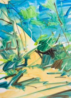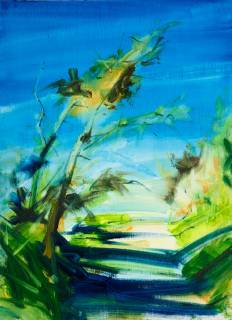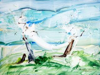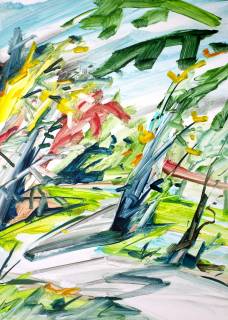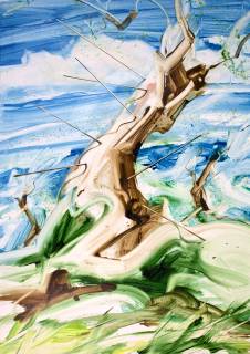 Geste, ausgelöst durch die Betrachtung einer Passage mit starkem Wind